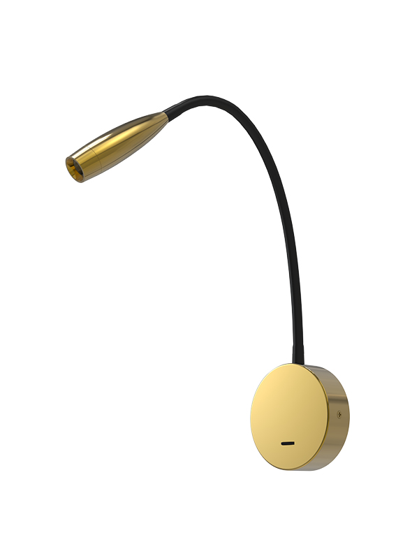 מנורת קיר לקריאה GABRIEL לד 5W עם צוואר ארוך מתכוונן עם כפתור CCT צבע זהב.