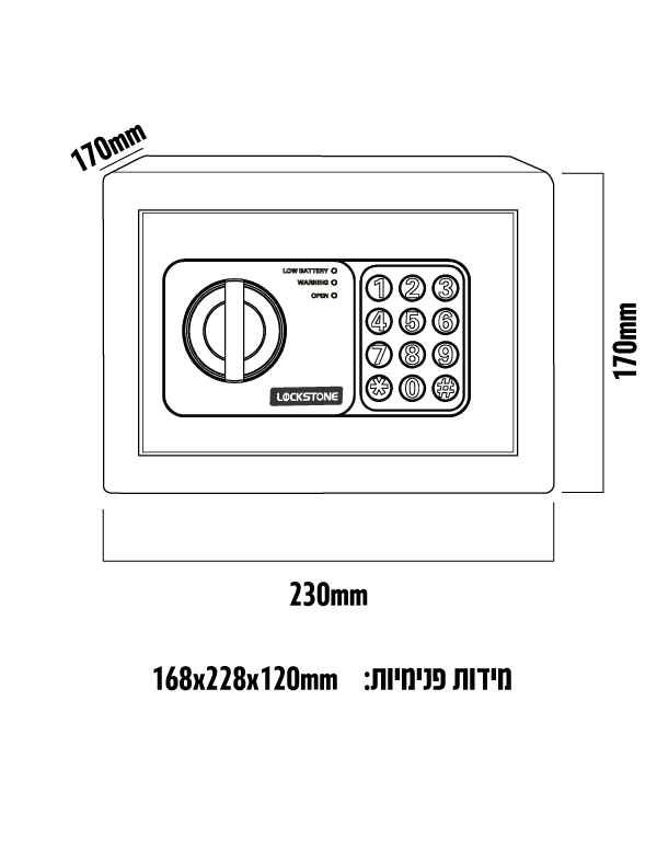 כספת דיגיטלית דגם ספינל מידות : 170X230X170 , קיבולת : 4.5 ליטר גימור שחור, מבית lockstone. כספת דיגיטלית עם לוח מקשים להפעלת הכספת מופעלות על ידי קוד בין 3-8 ספרות. עובי דלת 3 מ”מ. עובי דופן 1 מ”מ. גוף פלדה. כפתור אתחול reset לביטול / עדכון / החלפת קודים. שכבת מגן רכה בתחתית הכספת לשמירה על חפצי ערך. מנגנון הנעילה מופעל על ידי סוללות מערכת מכנית לגיבוי הכוללת מפתח לפתיחה בחירום. התראה על סוללות חלשות. קיבוע לקיר / רצפה.