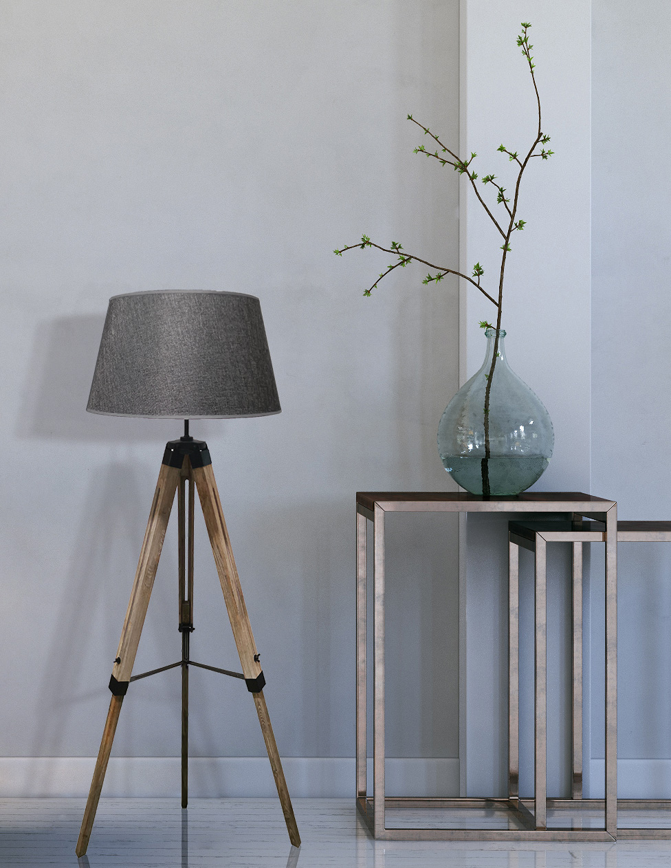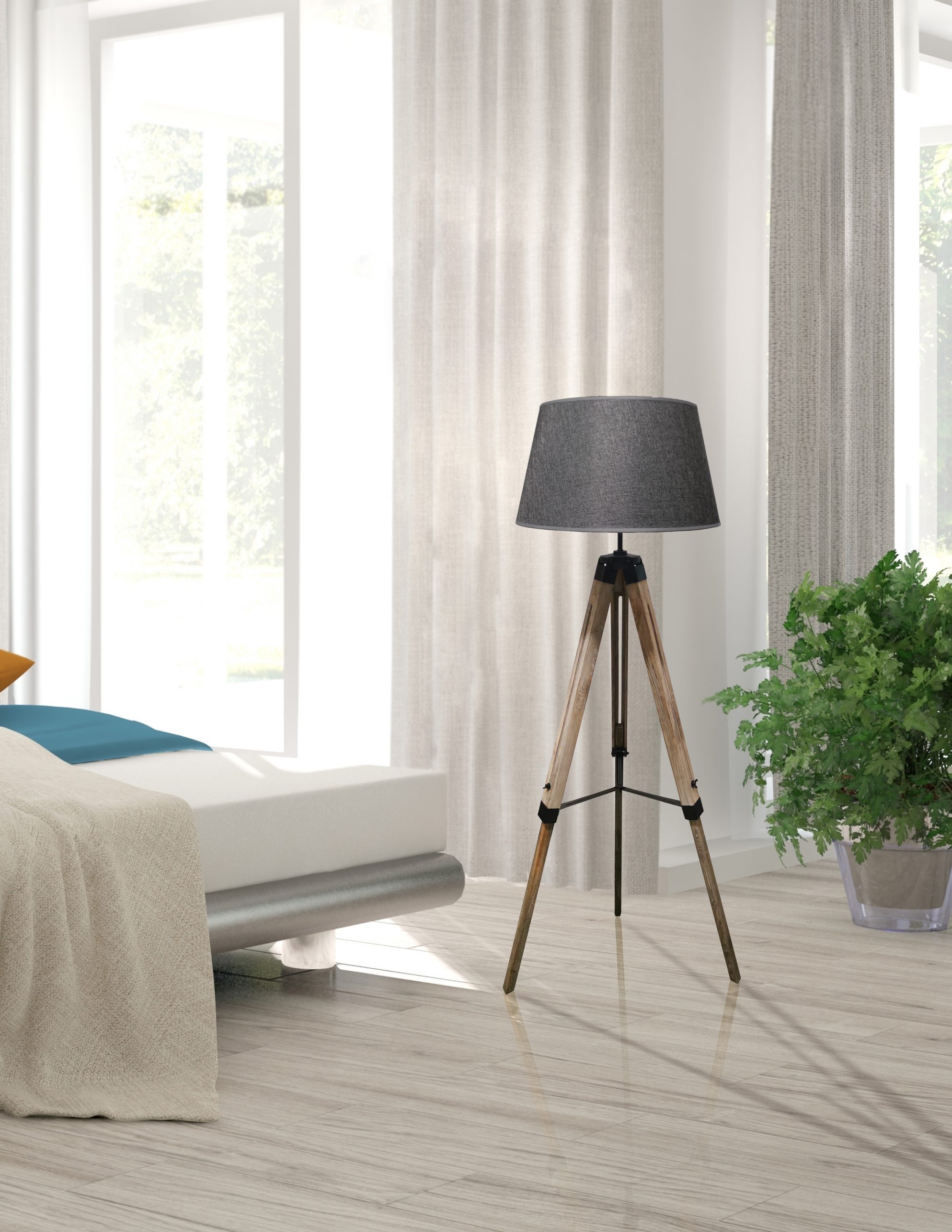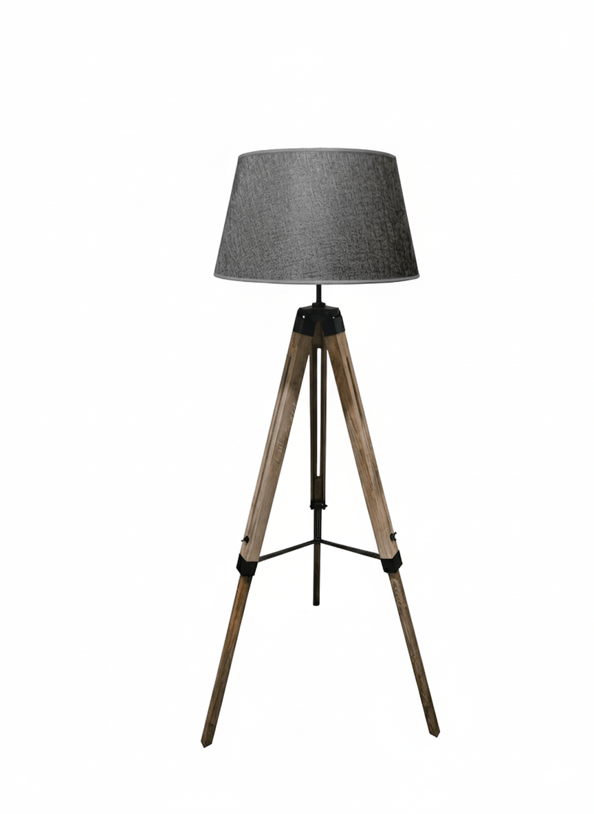 מנורת עמידה דקורטיבית דגם משי, מנורת הרצפה מעוצבת בקו אלגנטי וקלאסי תשתלב נהדר בכל סלון, טרקלין או פינת ישיבה, רגלי המנורה מעץ טבעי אהיל בד אפור, אורך כבל כ-3.6 מטר, מפסק ON/OFF. לא כולל נורות,  ניתן לרכוש בנפרד כאן.
