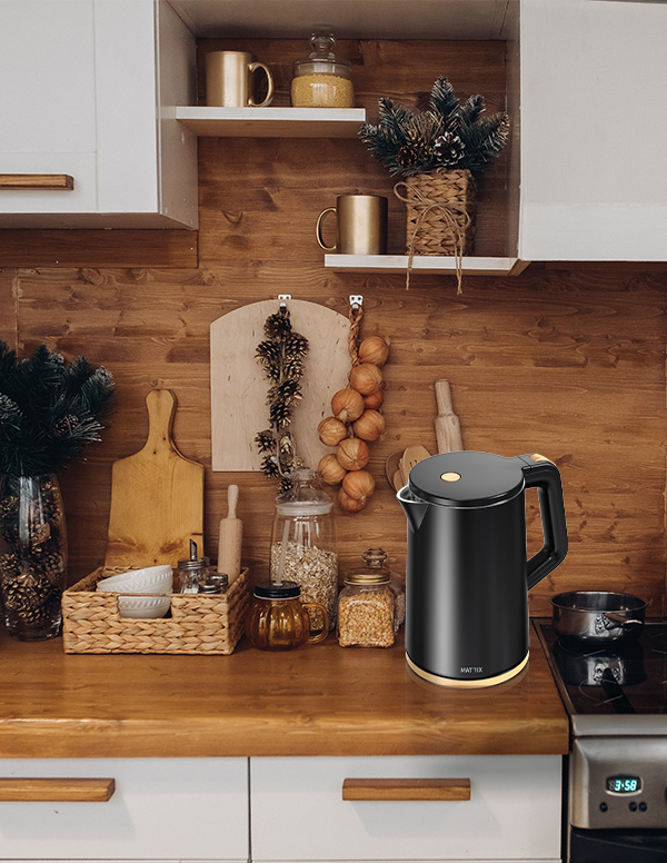 קומקום דקורטיבי נשלף, דגם מרסיי שחור עץ MATRIX 1800W 1.8L