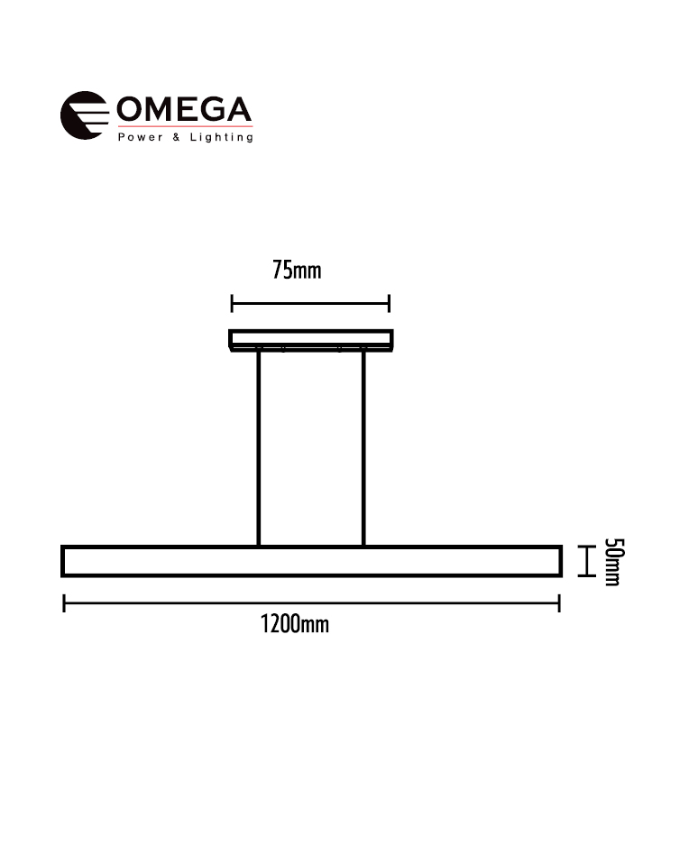 פרופיל תלוי מלבני Linea 1200x50x75mm CCT 40W שחור OMEGA