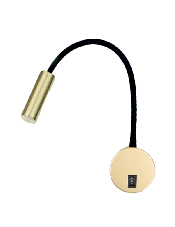 מנורת קיר MALKA קריאה לשבת, הספק 5W ,צוואר ארוך, ראש צלינדר, צבע זהב,  תריס לוויסות עוצמת האור, מתג Kelvin 2700-4000 ,CCT.