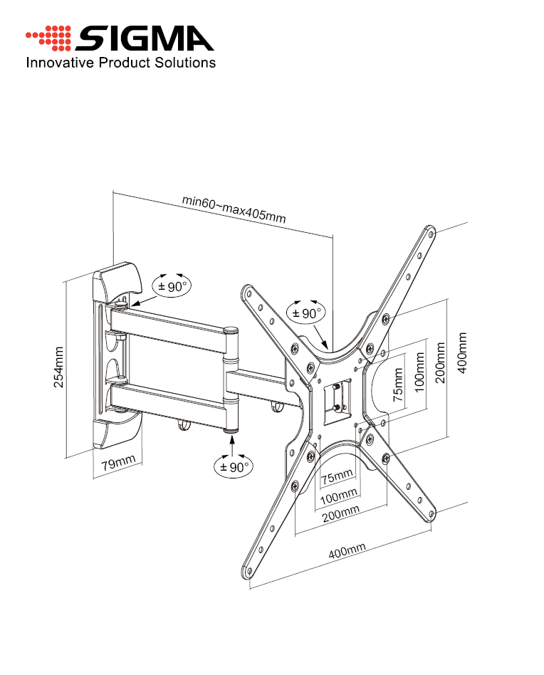 זרוע טלוויזיה דו מפרקית 16-65″, 35Kg מקס’, VESA 400*400mm, מרחק 6-40 ס”מ, אריזה צבעונית SIGMA. קל להתקנה, כולל מנגנון שחרור מהיר, המאפשר התקנה או הסרה של הטלוויזיה בזריזות. חומרים עמידים, חיי שירות ארוכים, עמידות בפני שריטות.