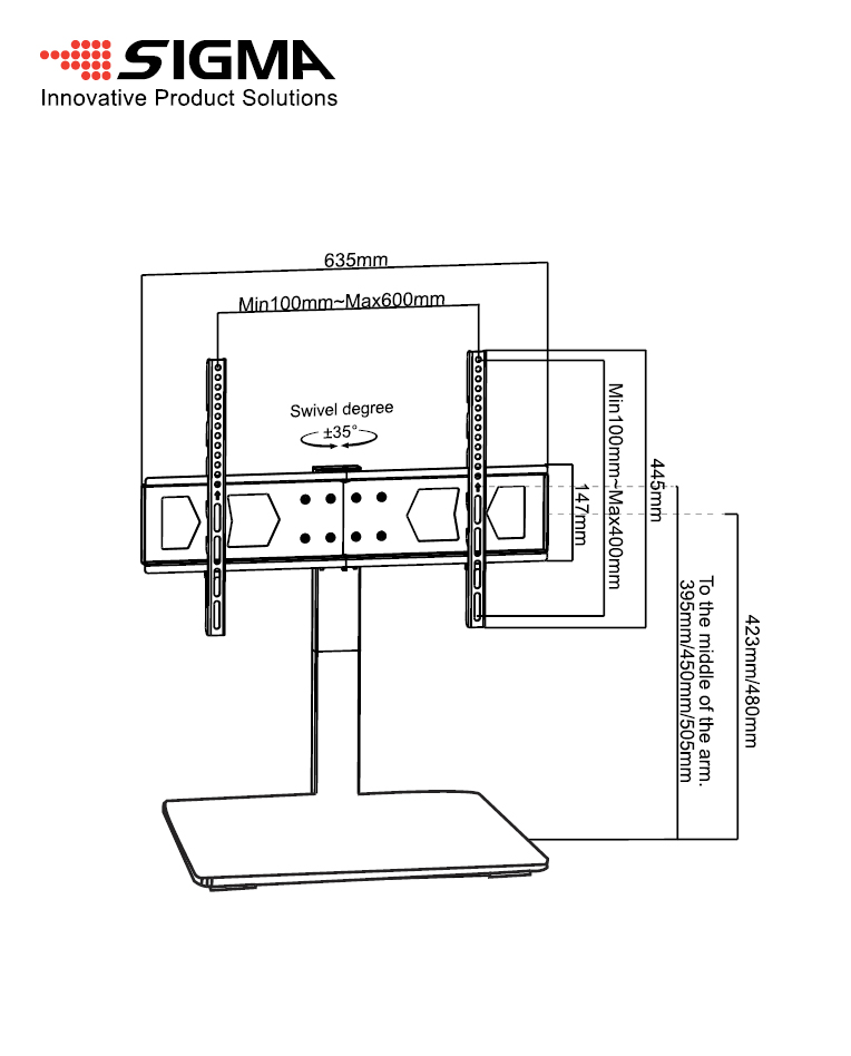 מתקן טלוויזיה שולחני, דגם זכוכית 32-70″, 40Kg מקס’, VESA 600*400mm, אריזת קרטון SIGMA. קל להתקנה, כולל מנגנון שחרור מהיר, המאפשר התקנה או הסרה של הטלוויזיה בזריזות. חומרים עמידים, חיי שירות ארוכים, עמידות בפני שריטות.